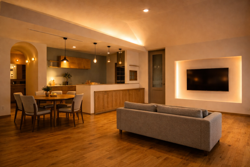 同じ空間でも、灯りが変わるだけで居心地は大きく変わります。夜に落ち着ける居場所は、偶然ではなく設計によって生まれるのか。その考え方を、実例とともにご紹介します。 -
