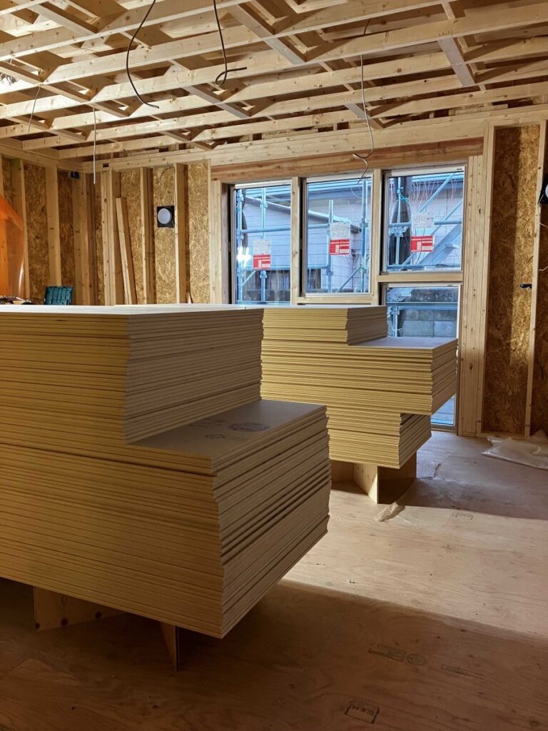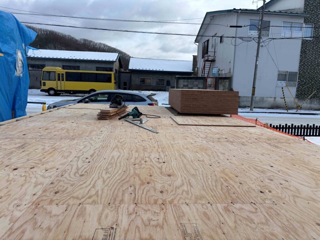 屋根がかわいらしい感じになる予定、ちょっと特別な屋根にお時間かかります。
