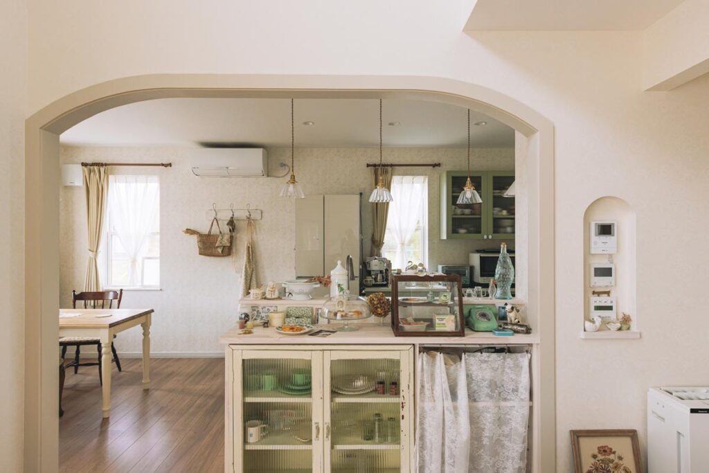 アーチ型の垂れ壁なども大工さんの造作。こうした1棟1棟違うデザインは、実際に施工を担当する職人さんたちの腕と、お客様のために手間を惜しまない努力があってこそ実現します。カントリーヴィレッジの建てる家はこうした難易度の高い施工、納めが求められることが多いので、大工さん、職人さんたちの経験値も豊富で、難しいオーダーも叶えることができます。