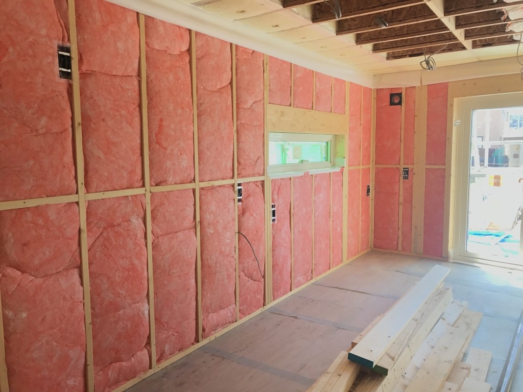 標準仕様はありませんが、外壁は2インチ×6インチ(約38mm×140mm)の規格で施工するため、壁の中に140ミリの断熱材を充填します。さらに、建て主様と相談し付加断熱(30ミリなど)を採用するケースが多くなっています。