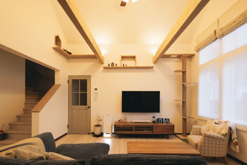 2匹の猫のために壁面に張り巡らされたキャットウォークも造作です。