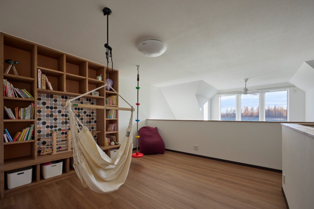 こうして十勝の景観に似合う、ダイナミックな外観が実現しました。W様は「パースなどで事前にイメージはできていましたが、実際建ってみると、思った以上に屋根の迫力がありました。天井に傾斜がある点は、最初は少し違和感がありましたが、しばらくすると気にならなくなりました。外観のデザインは朝日社長にお任せしたら素敵な家になりました」と話してくれました。