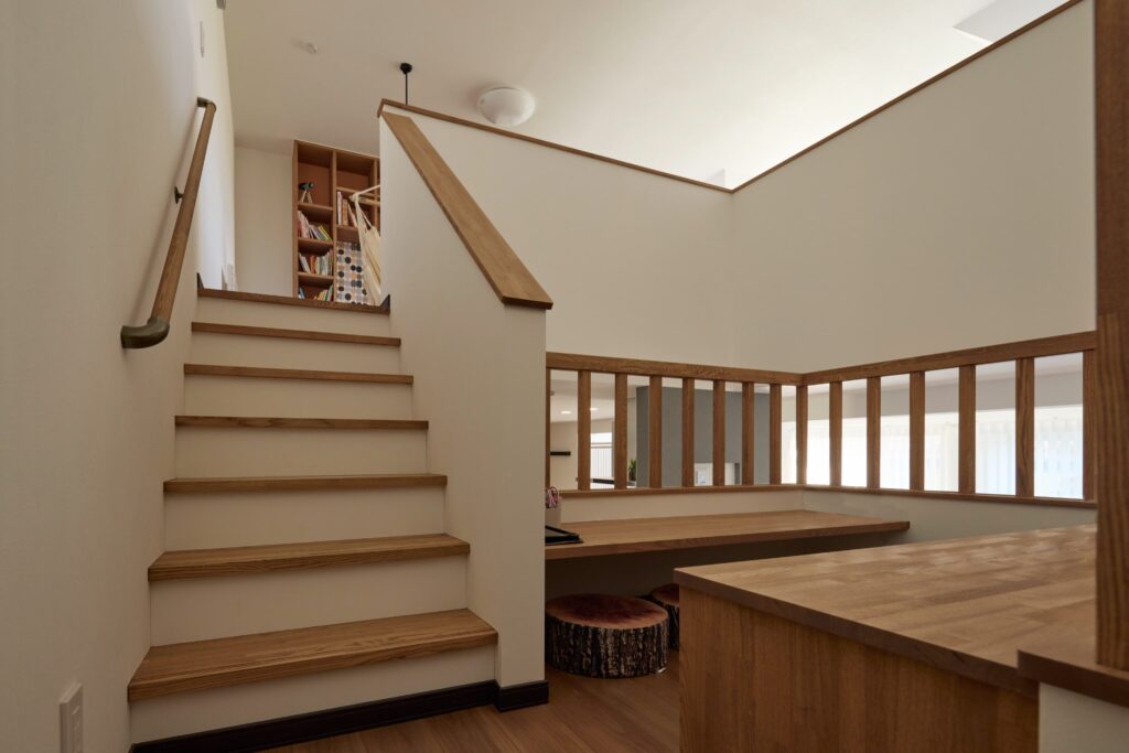 中2階のスペースでは娘さんたちが勉強したり。1階のLDKとつながった空間なので、家族のコミュニケーションがとりやすい点もメリットです。